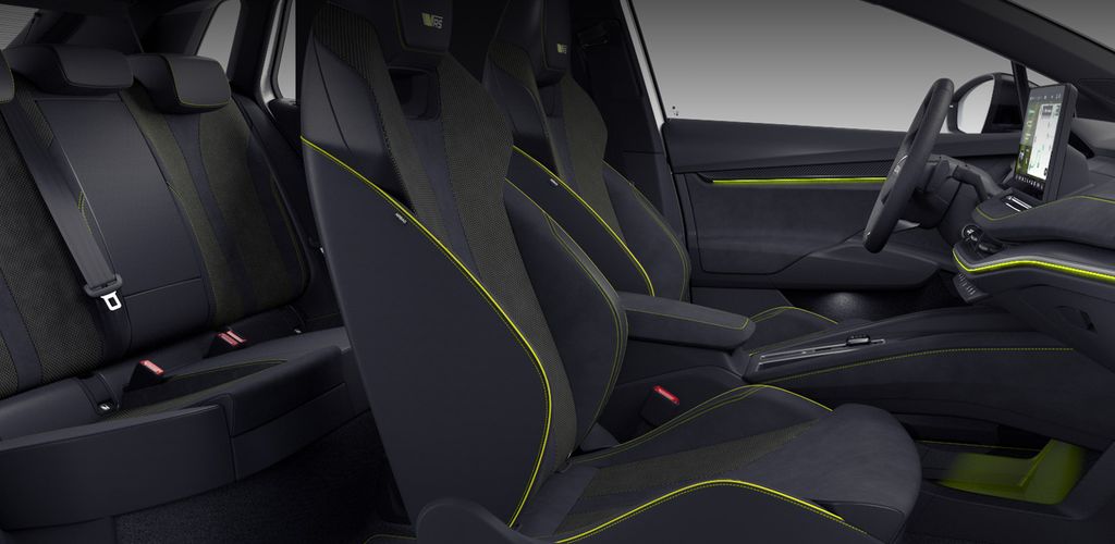 12 Lautsprecher, Ablagefach für Regenschirm, Ablagefach Türverkleidung hinten, Ablagefächer (Gepäck-/Laderaum), Airbag Beifahrerseite abschaltbar, Airbag Fahrer-/Beifahrerseite, Akustischer Fußgängerschutz, Außensound (e-sound), Ambiente-Beleuchtung LED, Ausstattungs-Paket: Advanced, Ausstattungs-Paket: Clever, Ausstattungs-Paket: Plus, Außenspiegel schwarz lackiert und Türgriffe außen in Wagenfarbe, Dachhimmel schwarz, Dachreling schwarz, hochglänzend, Design Selection RS Lounge, Easy Start (Keyless Easy Entry), Edelstahlpedale Sportdesign, Elektromotor (System: 250 kW) HA (EDFA), Elektromotor (System: 250 kW) VA (EDDA), Fahrassistenz-System: Abbiegebremsfunktion und Ausweichunterstützung, Fahrassistenz-System: Auffahrwarnsystem mit City-Notbremsfunktion (Frontradar-Assistent), Fahrassistenz-System: Intelligente Geschwindigkeitsanpassung (ISA) inkl. Speed-Limiter, Fahrassistenz-System: Multikollisionsbremse (Multi Collision Brake), Fahrassistenz-System: Müdigkeitserkennung, Fahrassistenz-System: Spurwechselassistent inkl. Auspark-Assistent und Ausstiegswarnung, Fahrassistenz-System: Verkehrszeichenerkennung, Fensterheber elektrisch vorn + hinten, Fensterzierleisten schwarz, hochglänzend, Fußraumbeleuchtung vorn und hinten LED, Gepäck-/Laderaumabdeckung, Geschwindigkeits-Begrenzeranlage, Heckscheibenwischer, HV-Batterie 84 kWh brutto / 79 kWh netto, Infotainment-System mit 13" Display, Innenausstattung: Dekoreinlagen Dark Carbon, Innenspiegel mit Abblendautomatik, Insassen-Schutzsystem proaktiv, Isofix-Aufnahmen für Kindersitz an Beifahrersitz und Rücksitze außen (inkl. Top Tether), Karosserie: 5-türig, Kindersicherung, manuell, Kofferraumbeleuchtung, Kombiinstrument digital (virtual cockpit), Komfort-Freisprecheinrichtung Bluetooth, mit Sprachsteuerung, Kopf-Airbag-System, Kopfstützen vorn und hinten verstellbar, Ladekabel mit Typ 2-Stecker (Mode 3), LED-Beleuchtung zwischen Scheinwerfer (Tech-Deck), Lenksäule (Lenkrad) verstellbar (vertikal / axial), Leuchtweitenregelung automatisch, Licht- und Regensensor, LM-Felgen, Parkbremse elektronisch, Radioempfang digital (DAB+), Radstand Standard, Reifen-Reparaturkit, Reifendruck-Kontrollsystem, Rücksitz geteilt / klappbar (60:40) Mittelarmlehne und Durchladefunktion, Schnellladevorrichtung (CCS-Ladedose), Seitenairbag vorn, Seitenairbag vorn mitte (Center-Airbag), Servolenkung elektronisch (Servotronic), Sitzbezug / Polsterung: Kunstleder / Microfaser schwarz mit Ziernaht in Lime, Sitze vorn höhenverstellbar inkl. Lendenwirbelstütze verstellbar, Sitzheizung vorn, Smart-Paket, Sonderlackierung Energy-Blau, Sonnenblenden mit Spiegel (LED-Beleuchtung), Sport-Paket, Sportsitze, Steckdose (12V-Anschluß) im Koffer-/Laderaum, Textilfussmatten, Transport-Paket, USB-Schnittstelle vorn (2-fach, Typ C), Vorbereitung für Alkohol-Wegfahrsperre (Alcolock), Warnanlage für Sicherheitsgurte hinten, Warnanlage für Sicherheitsgurte, Fahrer-/Beifahrerseite, Wireless SmartLink